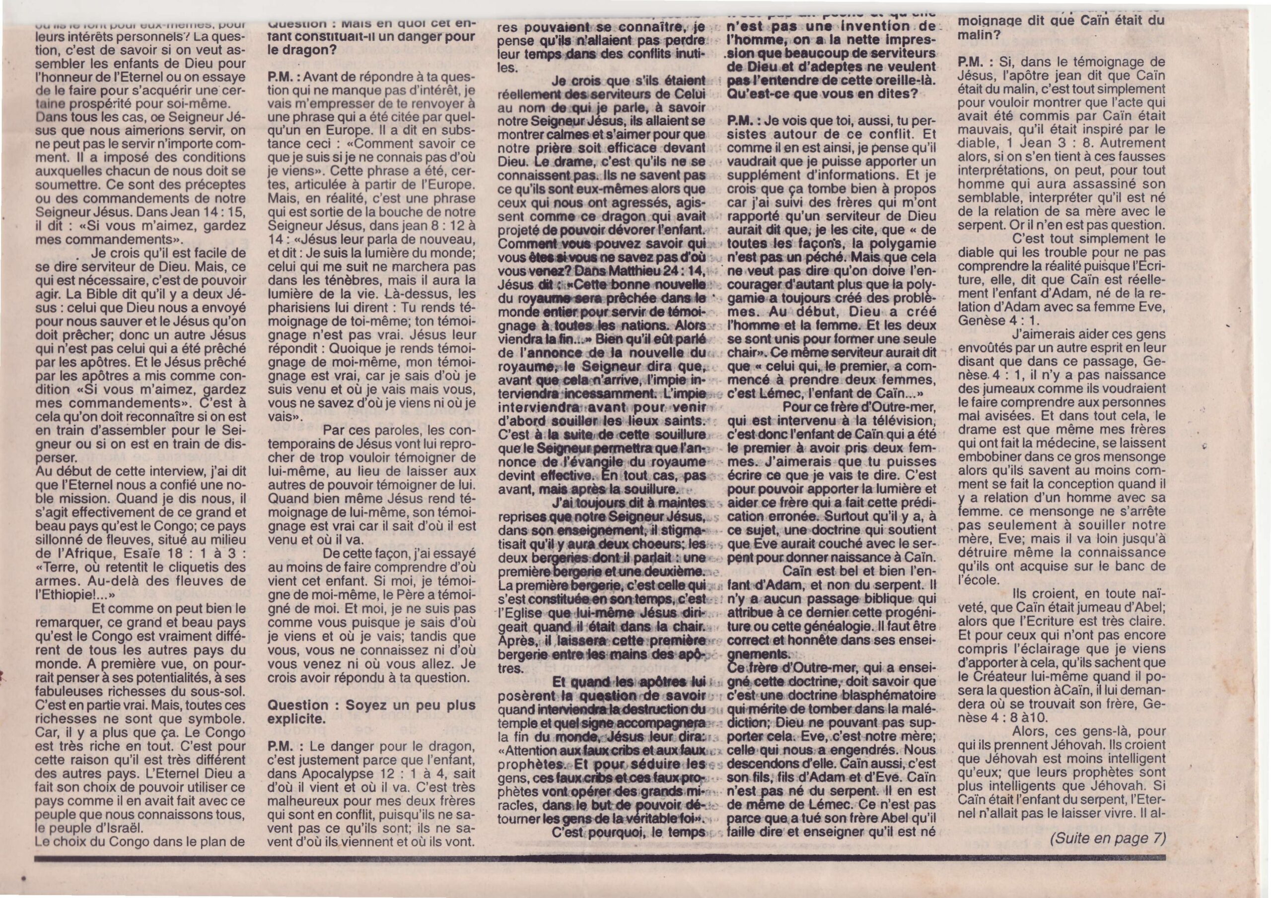 « Aujourd’hui, nous devons nous considérer comme cet enfant qui devrait naître dans Apocalypse 12:1 à 4. »