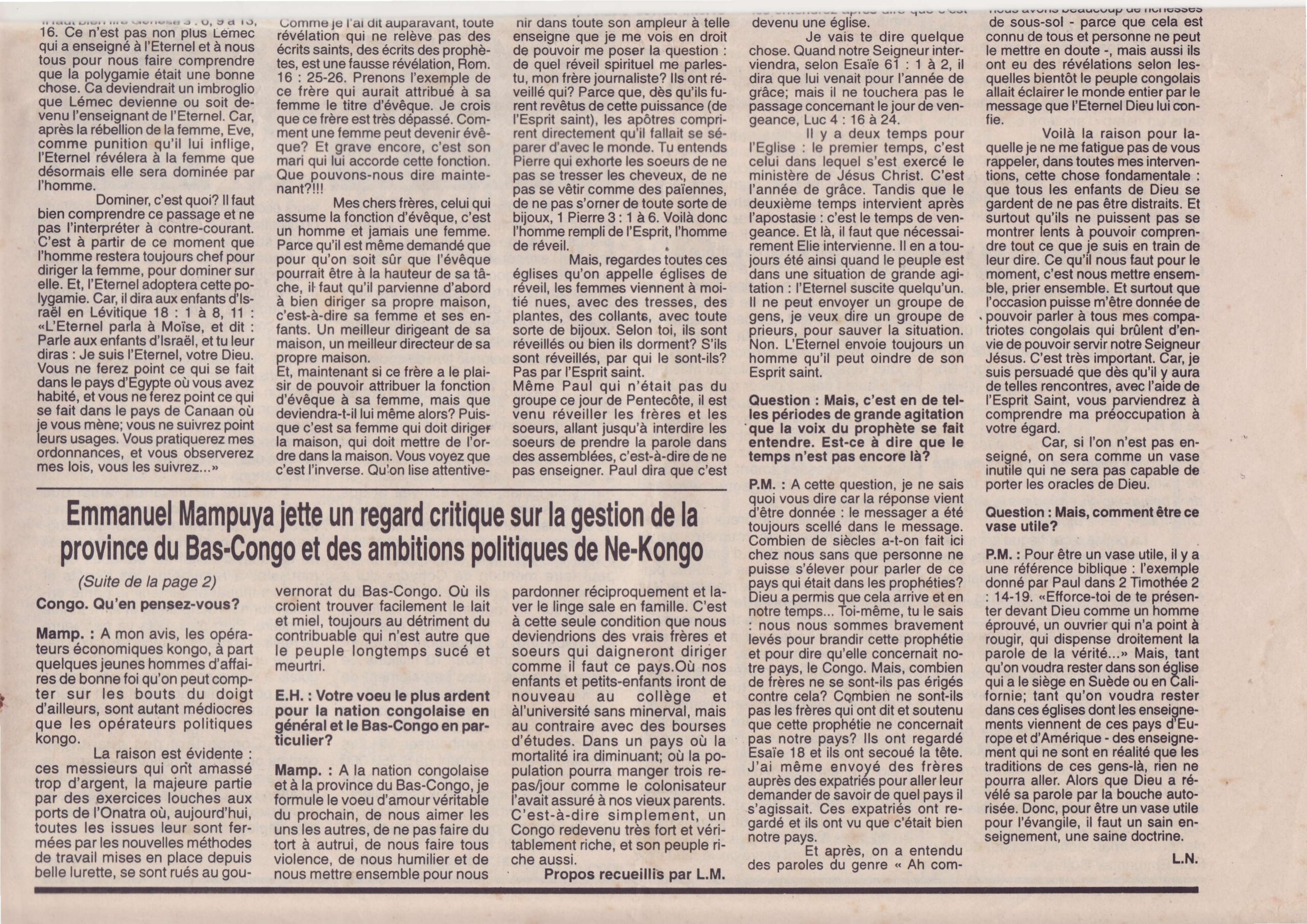 « Le frère qui vient d’attribuer le titre d’évêque à sa femme est très dépassé. »