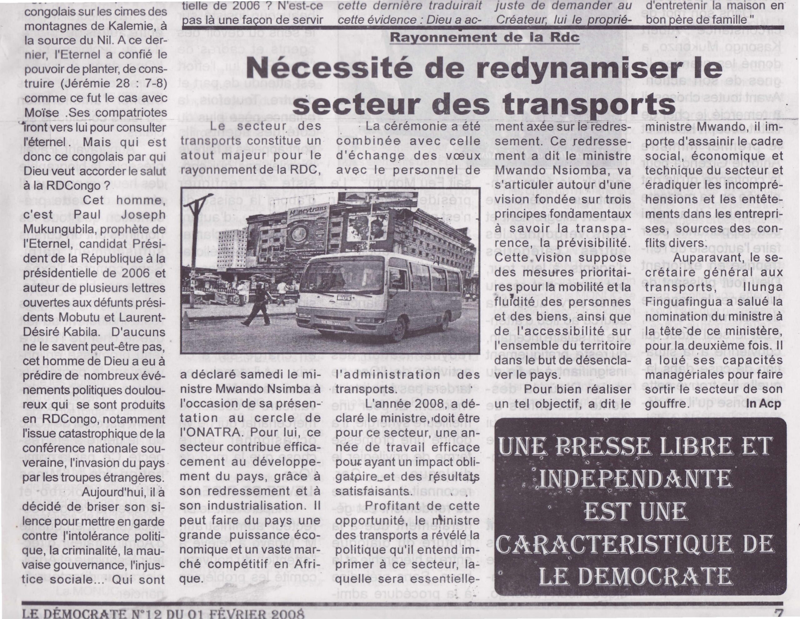 Le Démocrate N°12, 1er février 2008