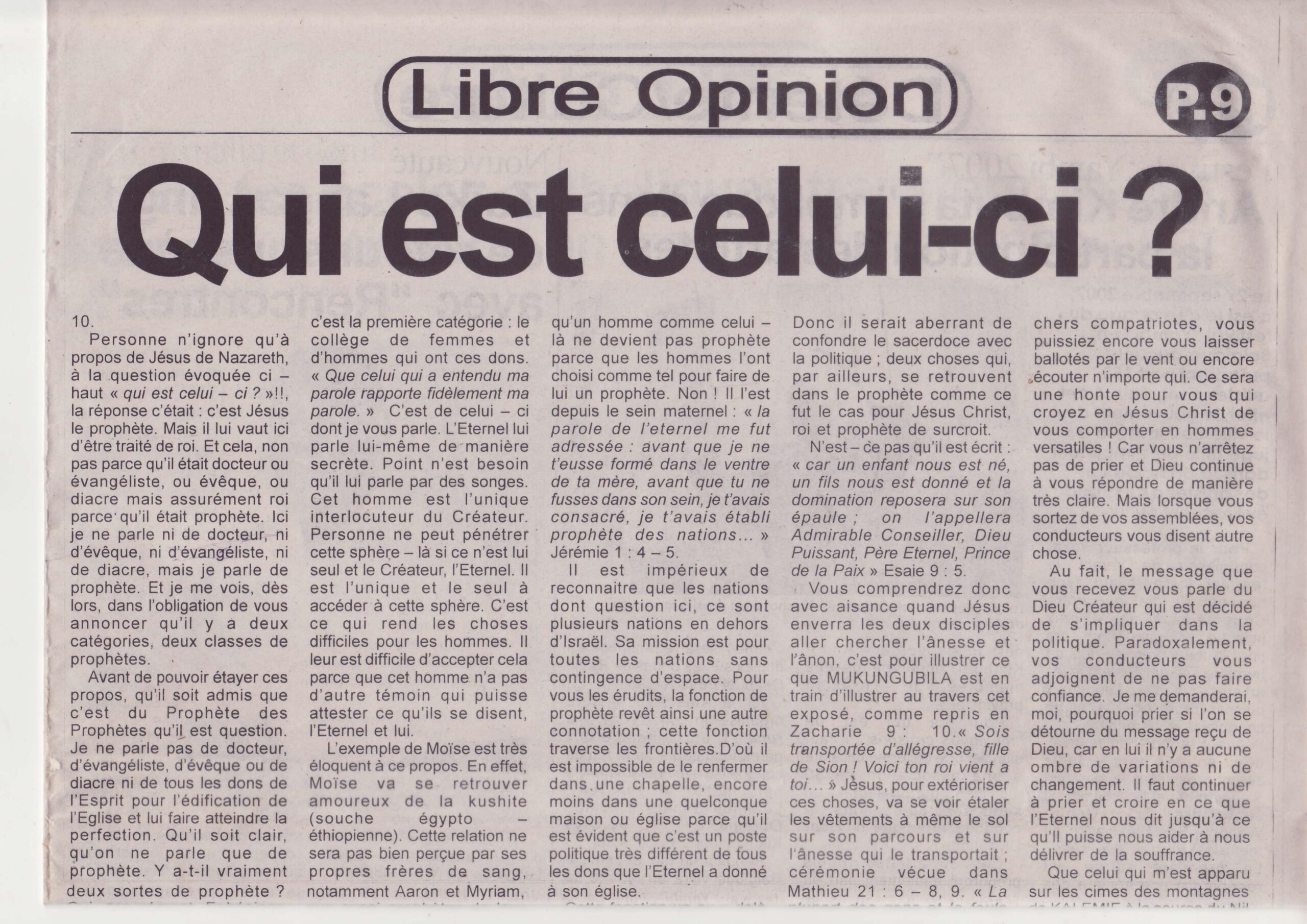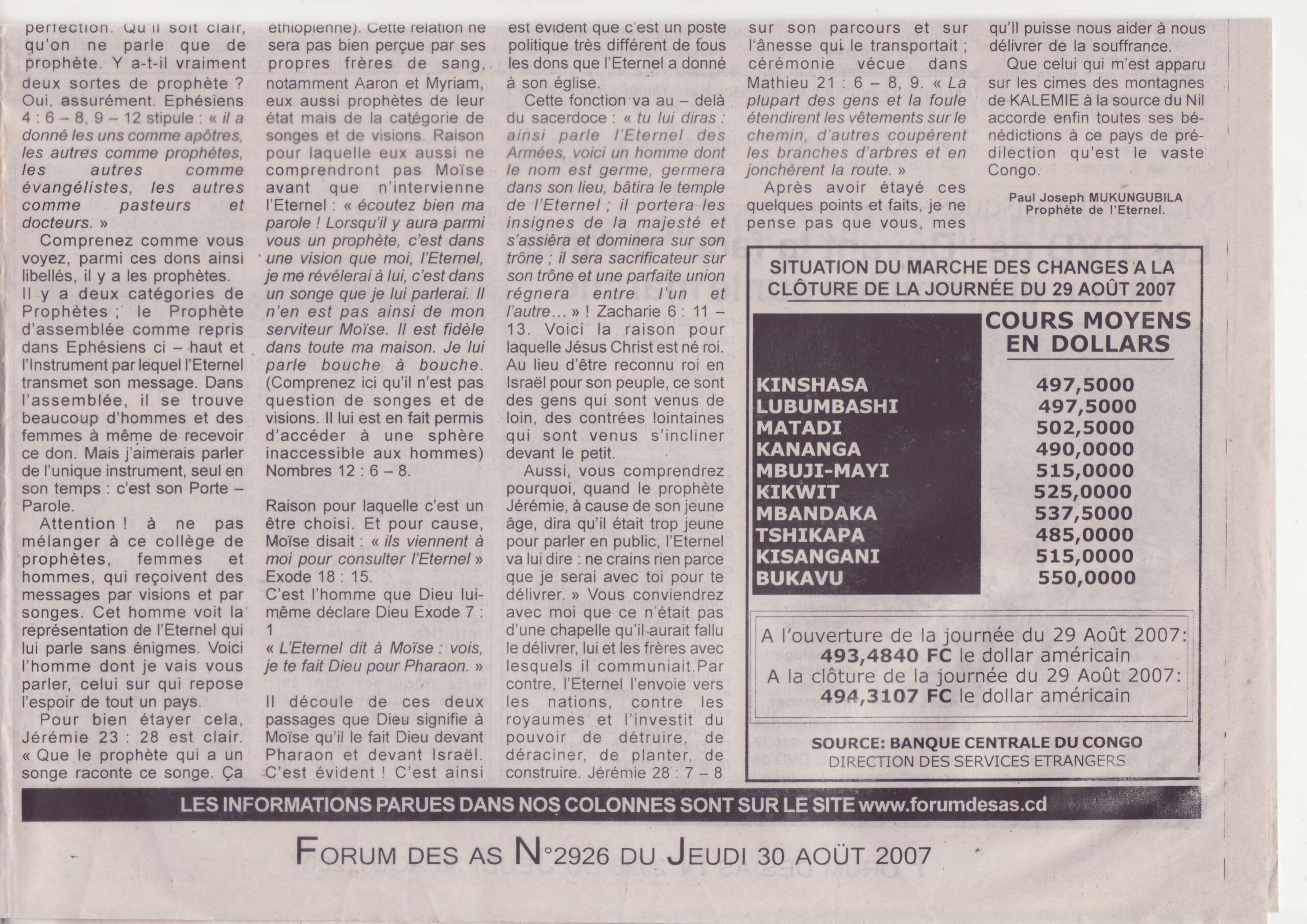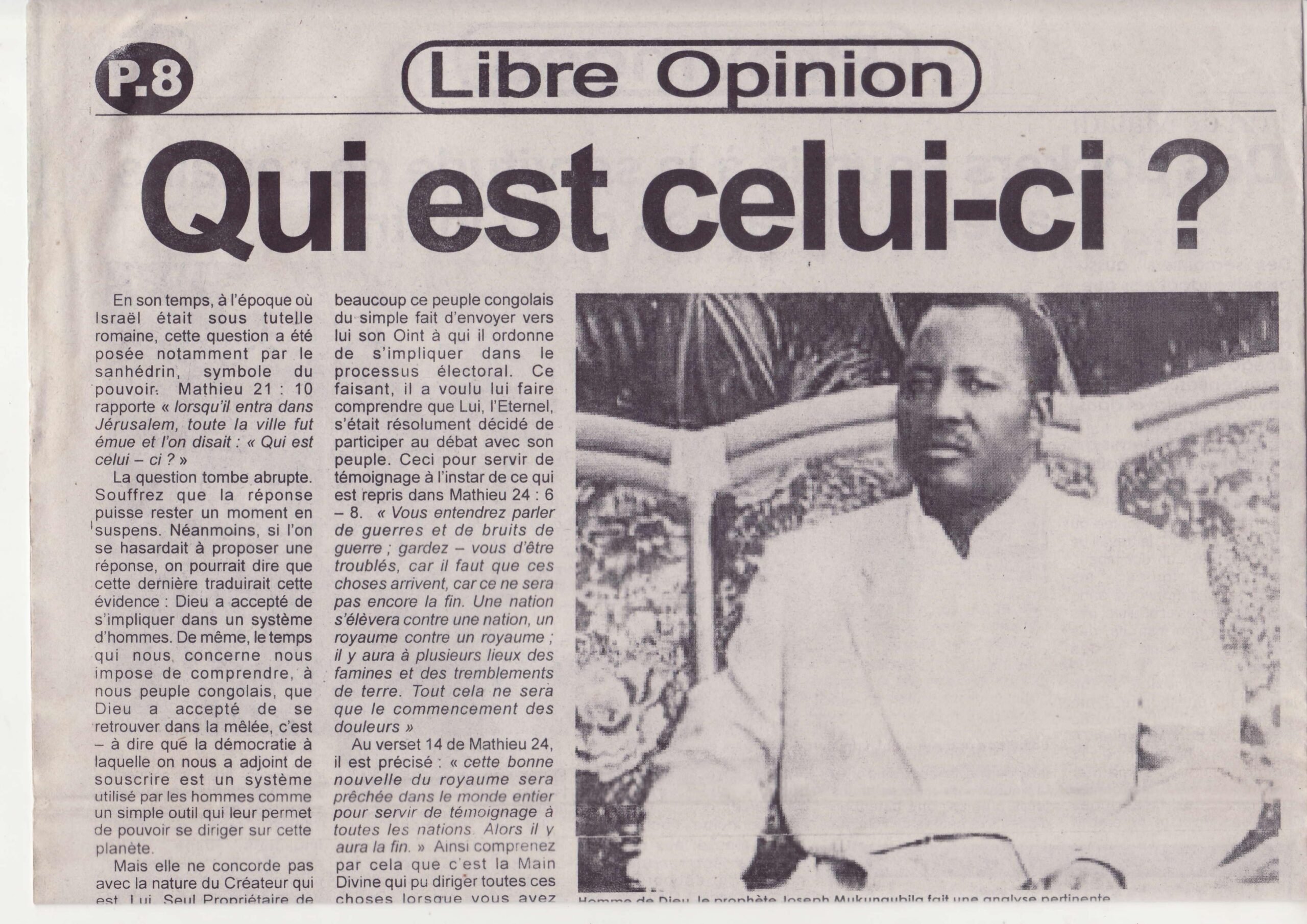 Paul Joseph Mukungubila, Prophète de l’Éternel.