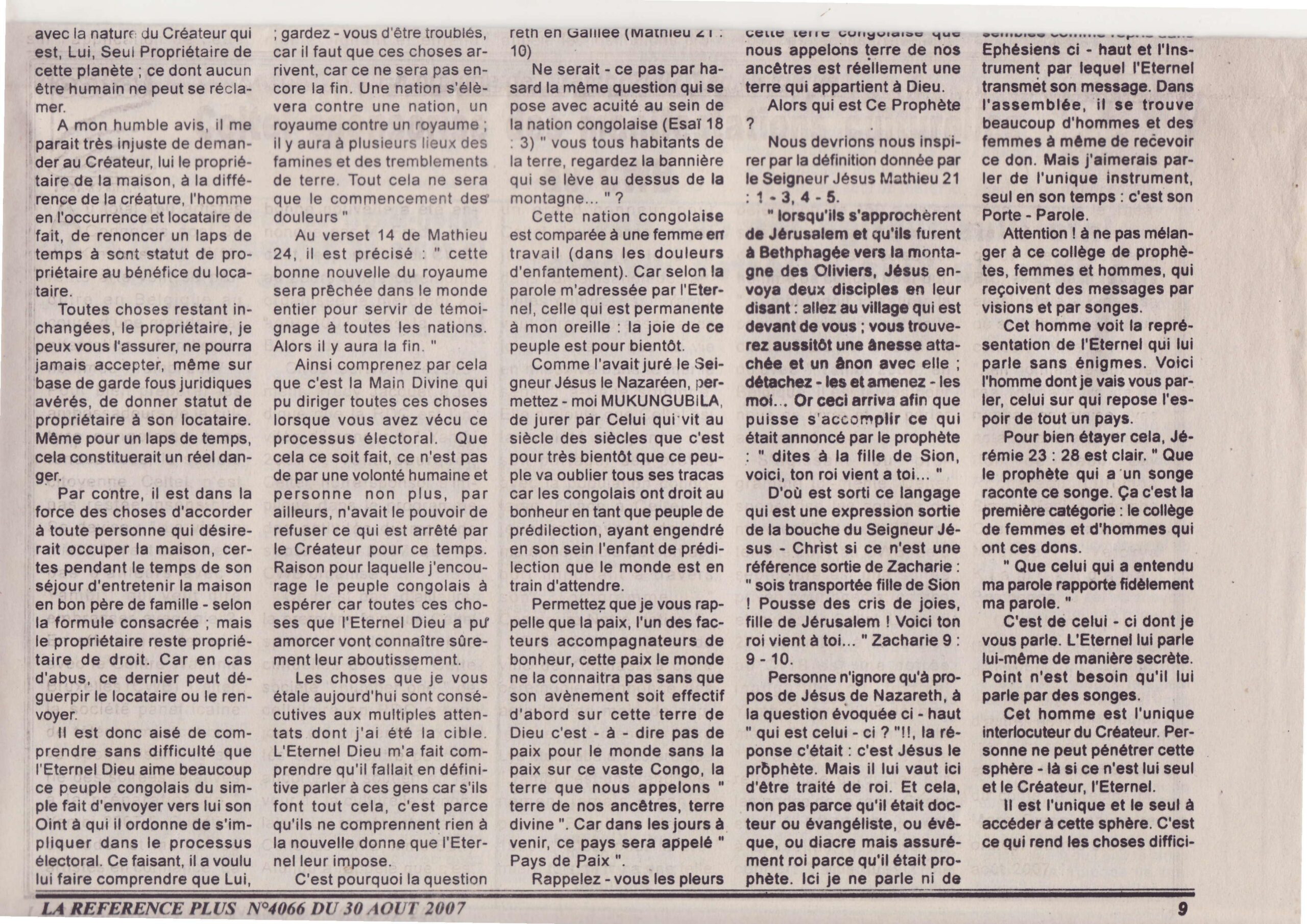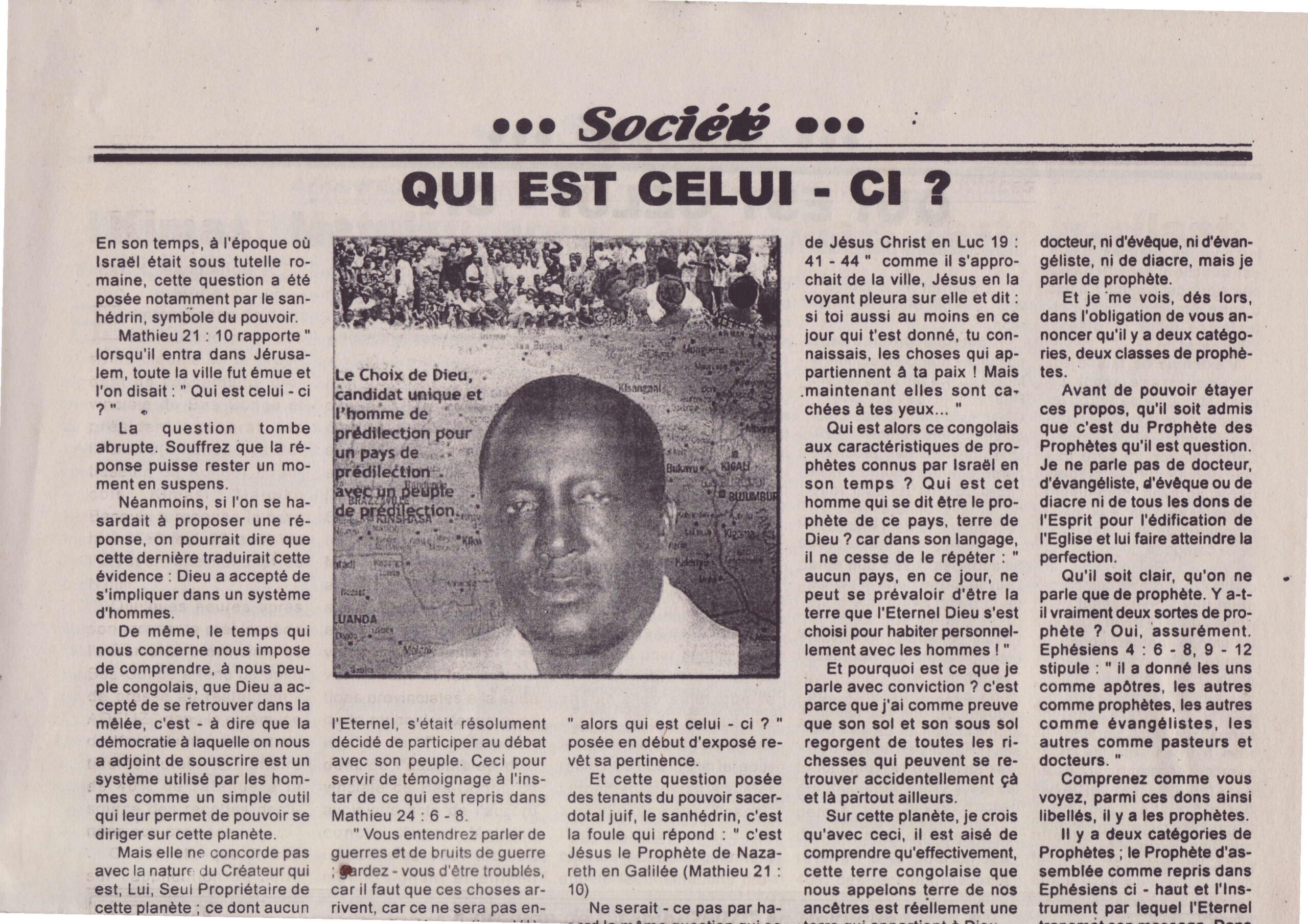 Articles Qui est celui-ci ? — La Référence Plus 📅 30 août 2007 Même article « Qui est celui-ci ? » republié dans La Référence Plus N°4066 du 30 août 2007, rubrique « Société ». Voir les scans originaux ci-dessous. Scans originaux du journal Partager : Facebook Twitter WhatsApp ← PrécédentQui est celui-ci ? — La Prospérité Suivant →QUI EST CELUI-CI ?