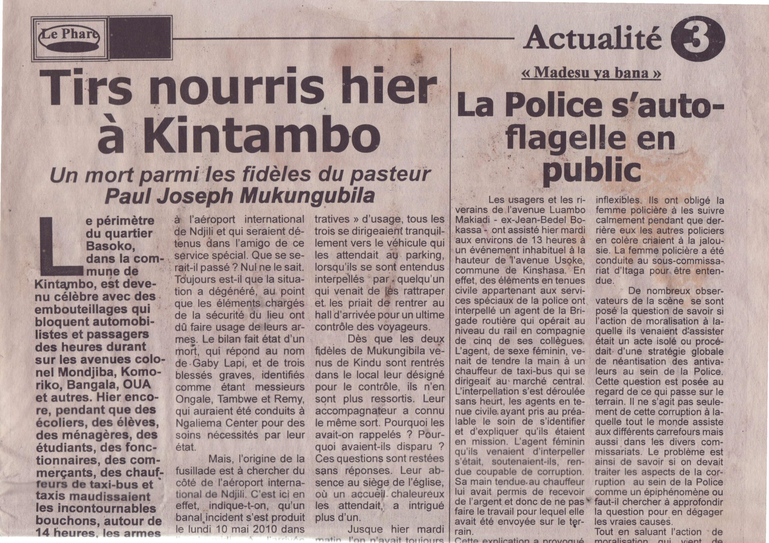 Tirs nourris hier à Kintambo — Un mort parmi les fidèles du pasteur Paul Joseph Mukungubila